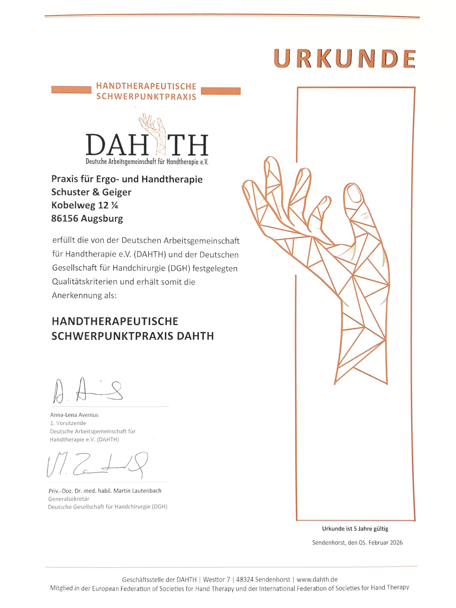 Seit 1992 dürfen wir Patienten mit ergo- und handtherapeutischer Behandlung in Augsburg versorgen.
